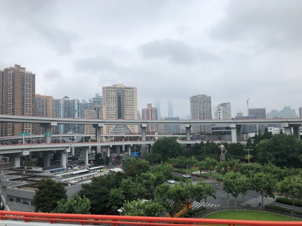 Once we got to the Shanghai Tower, we tried to go up to the top but were told that you could not see anything due to the rain clouds. Oh well, we basically got the same view from our hotel room! We also got an up-close view of the Oriental Pearl Tower, a unique piece of architecture.