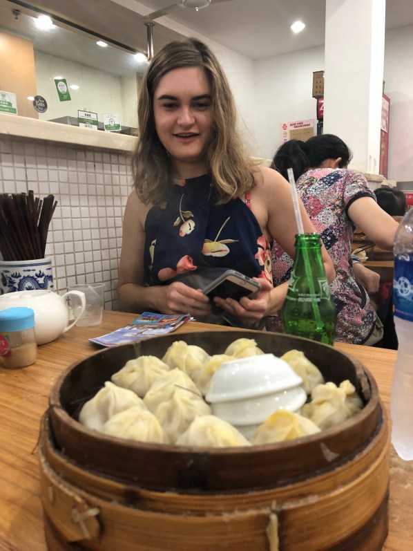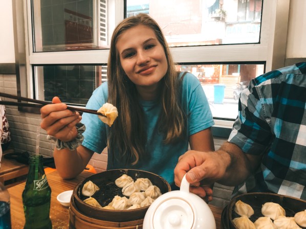 For dinner, my dad took my sister and me to a local dumpling restaurant named Jia Jia Tang Bao located on Huanghe Road. This was just a few blocks from our hotel, so it was well worth it to go and experience the local food in this magnificent city. You can either order pork or crab dumplings, but the crab is much more expensive. We decided to order three trays of the pork dumplings and they were delicious! Each tray came with about twelve pieces, making it a very satisfying meal.